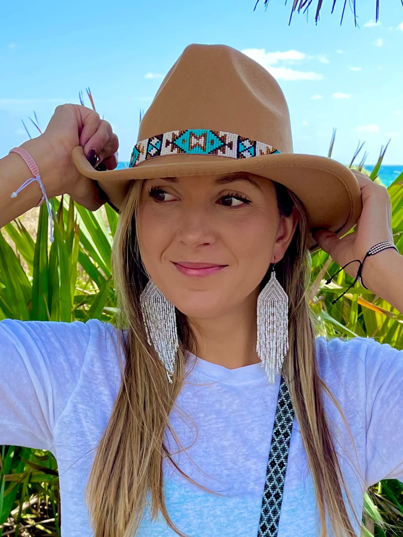 Adjustable Leather Hat Band & Statement Beaded Earrings: Crafted bead by bead, these vibrant accessories celebrate culture and individuality.