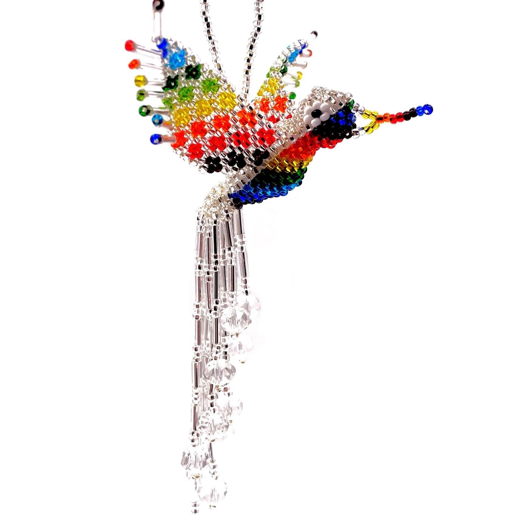 Handcrafted Ornaments: Handcrafted crystal Beaded Hummingbird traditionally seen as messengers of joy, resilience, and love; commonly used as a Christmas ornament, keychain, window or mirror charm.