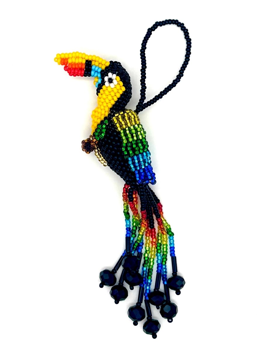 Bring vibrant tropical charm to your home with our Rainbow Beaded Toucan Ornament, meticulously handcrafted by Indigenous Mayan women artisans in Guatemala using premium glass seed beads.