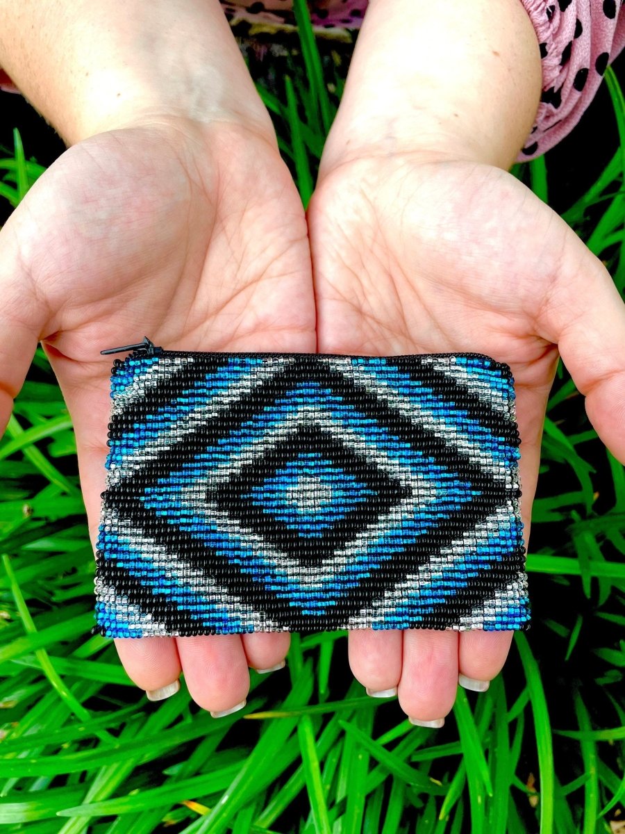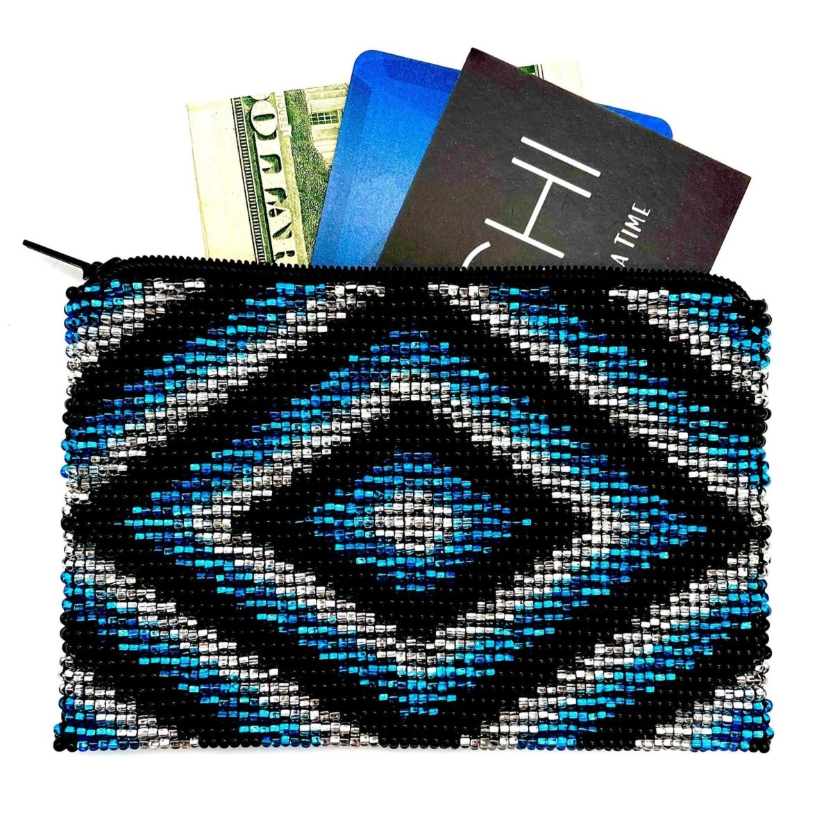 Our sophisticated Black & Blue Diamond Zipper Pouch (4.5"L x 3.0"W) brings Christmas elegance through traditional diamond patterns in midnight black and deep blue that represent the peaceful beauty of Christmas night skies and the quiet moments that make the holiday season truly special. This Christmas stocking stuffer gift is expertly hand beaded using premium nylon and brilliant Czech glass seed beads by skilled artisans in Guatemala, creating diamond designs that capture the serene beauty of Christmas evenings when families gather and hearts are filled with gratitude for the year's blessings.
