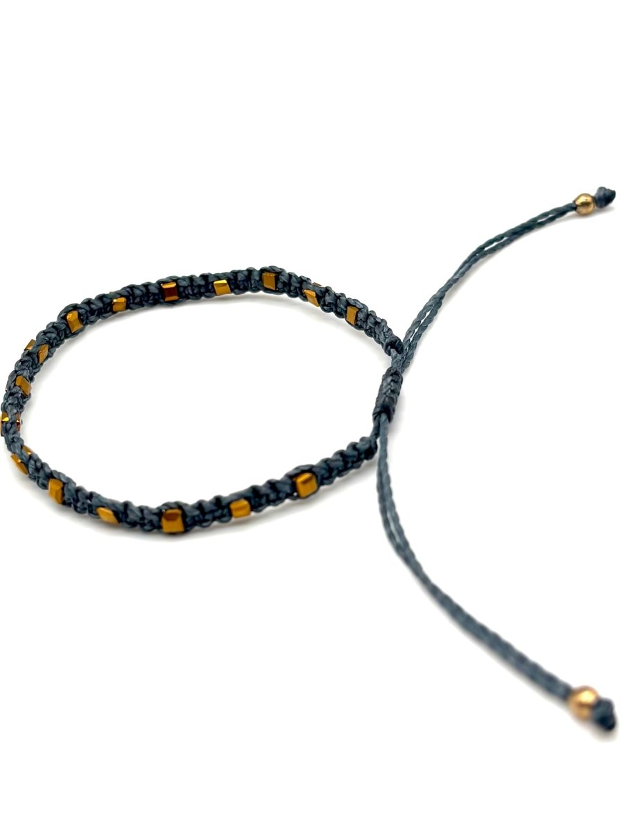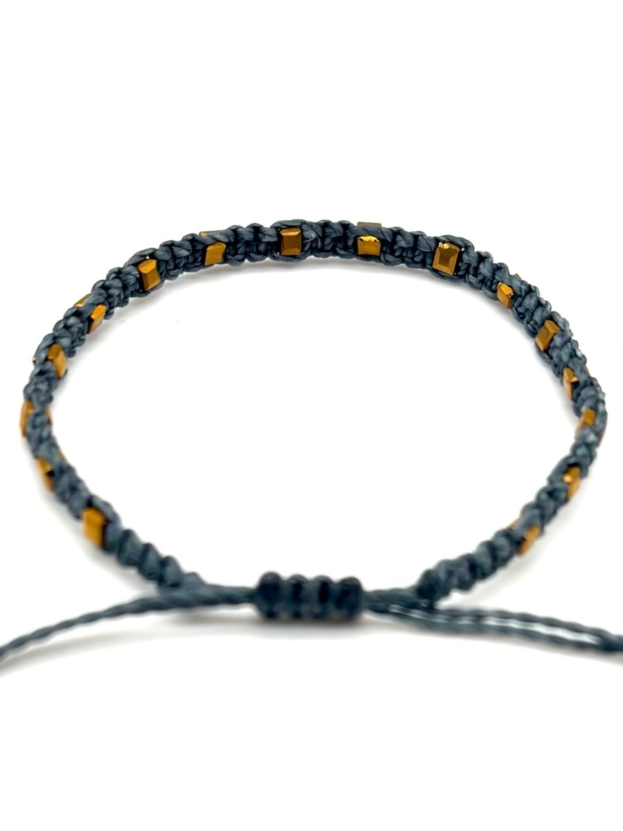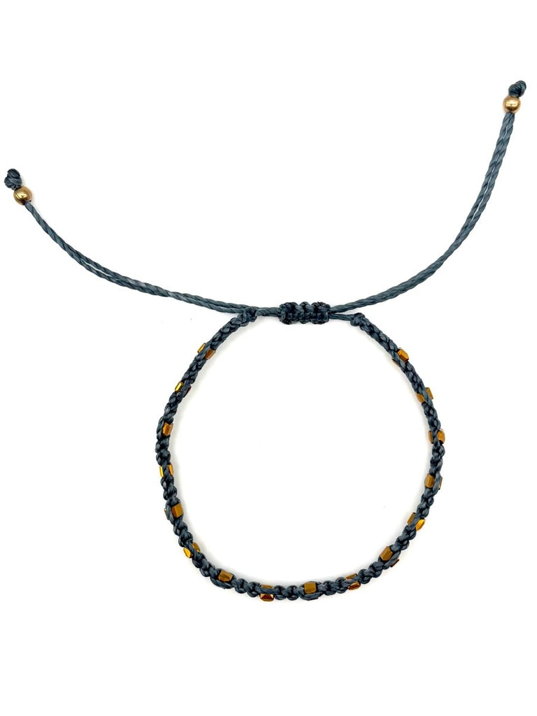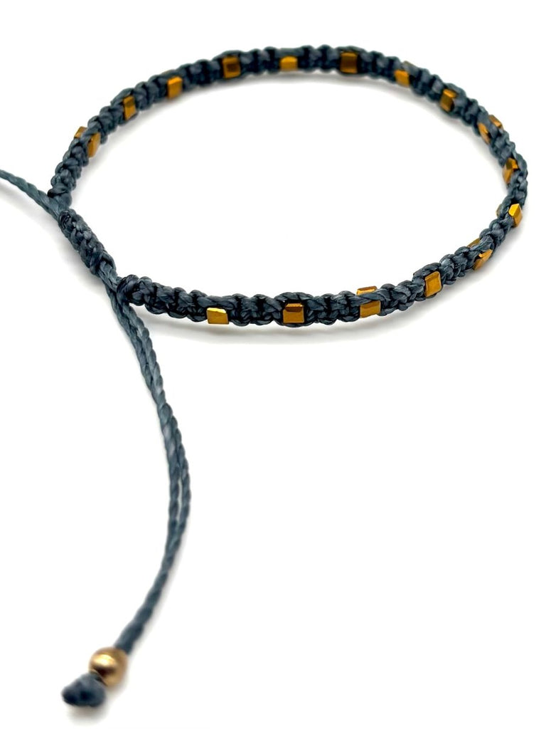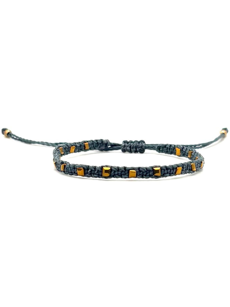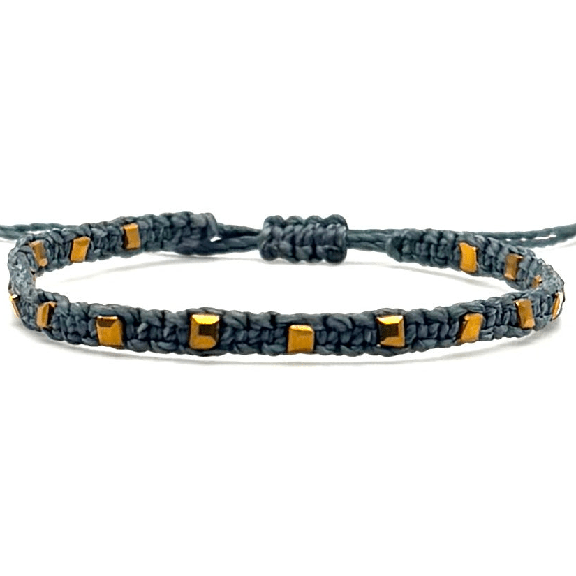 Gray & Gold Square Woven Bracelet is backordered and will ship as soon as it is back in stock.