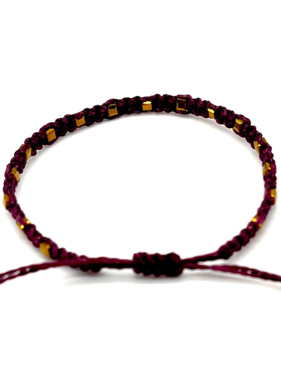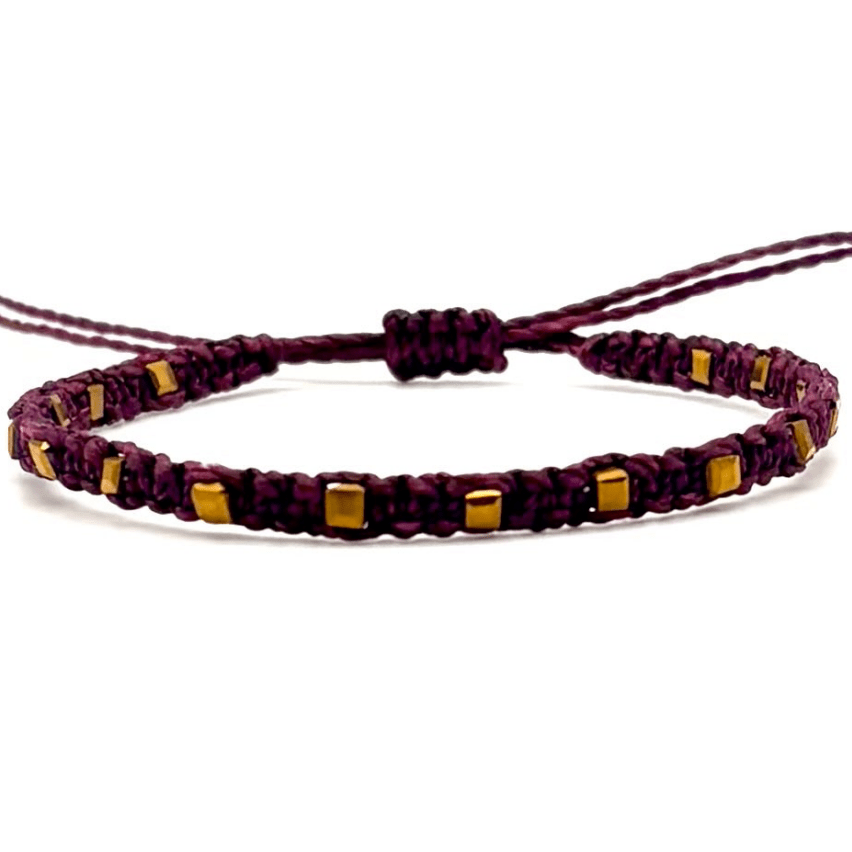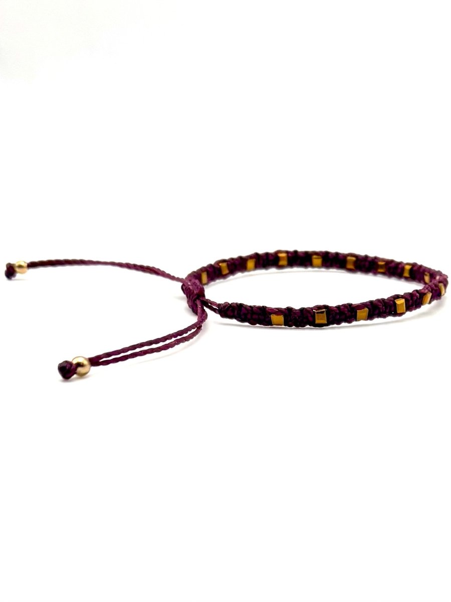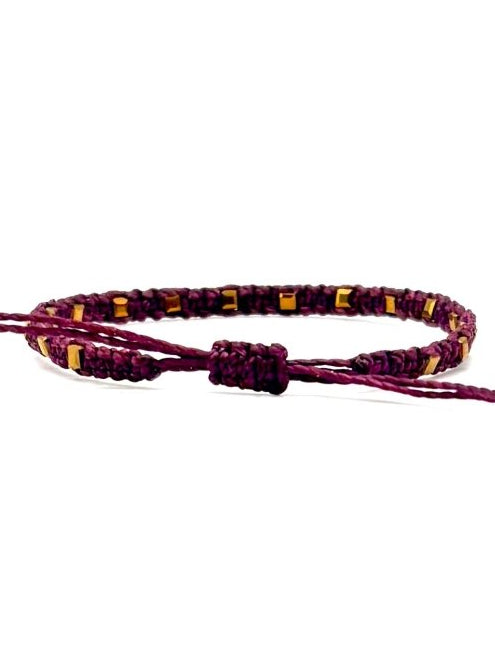 Purple & Gold Square Woven Bracelet is backordered and will ship as soon as it is back in stock.