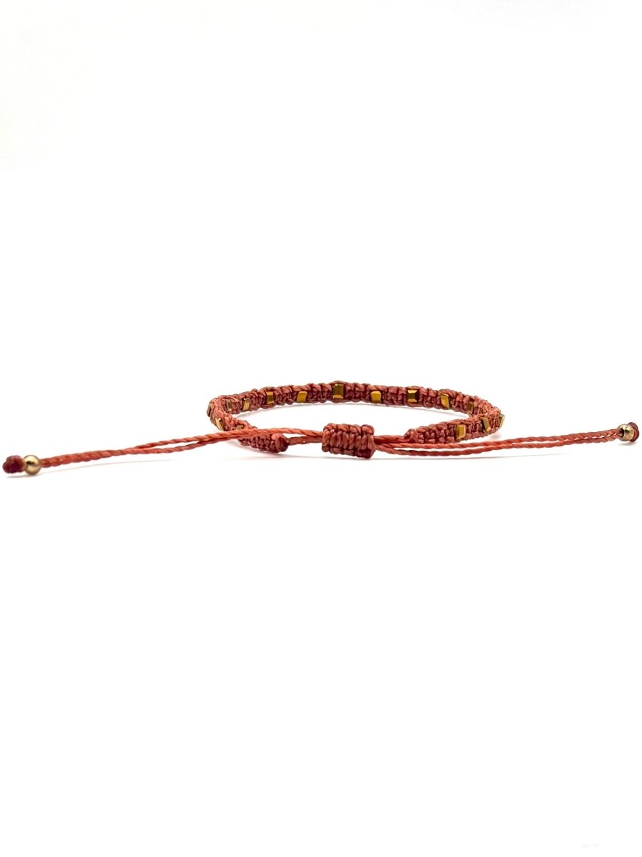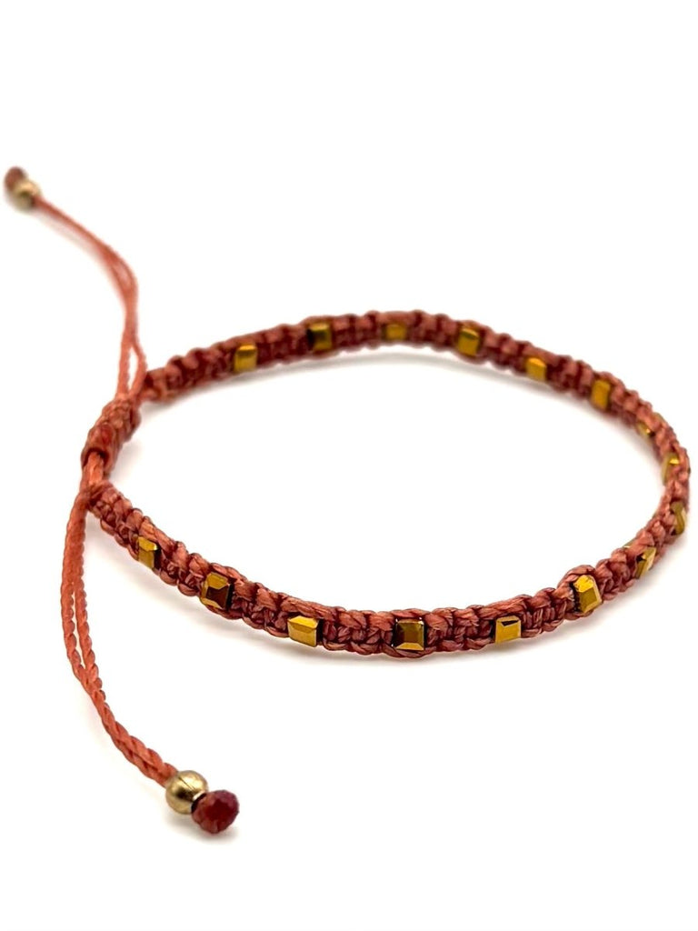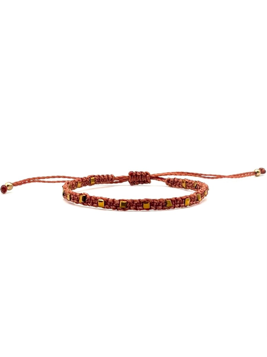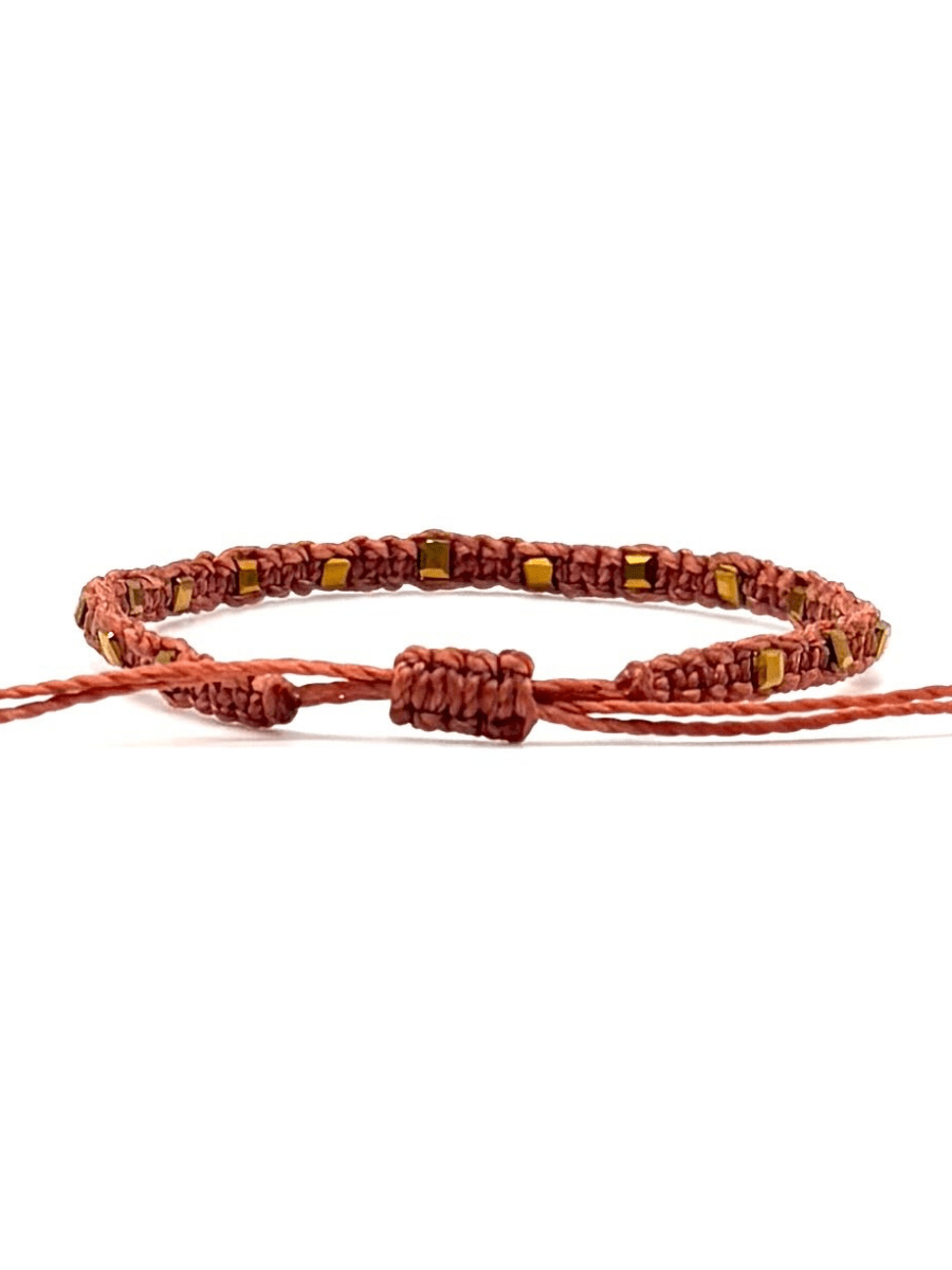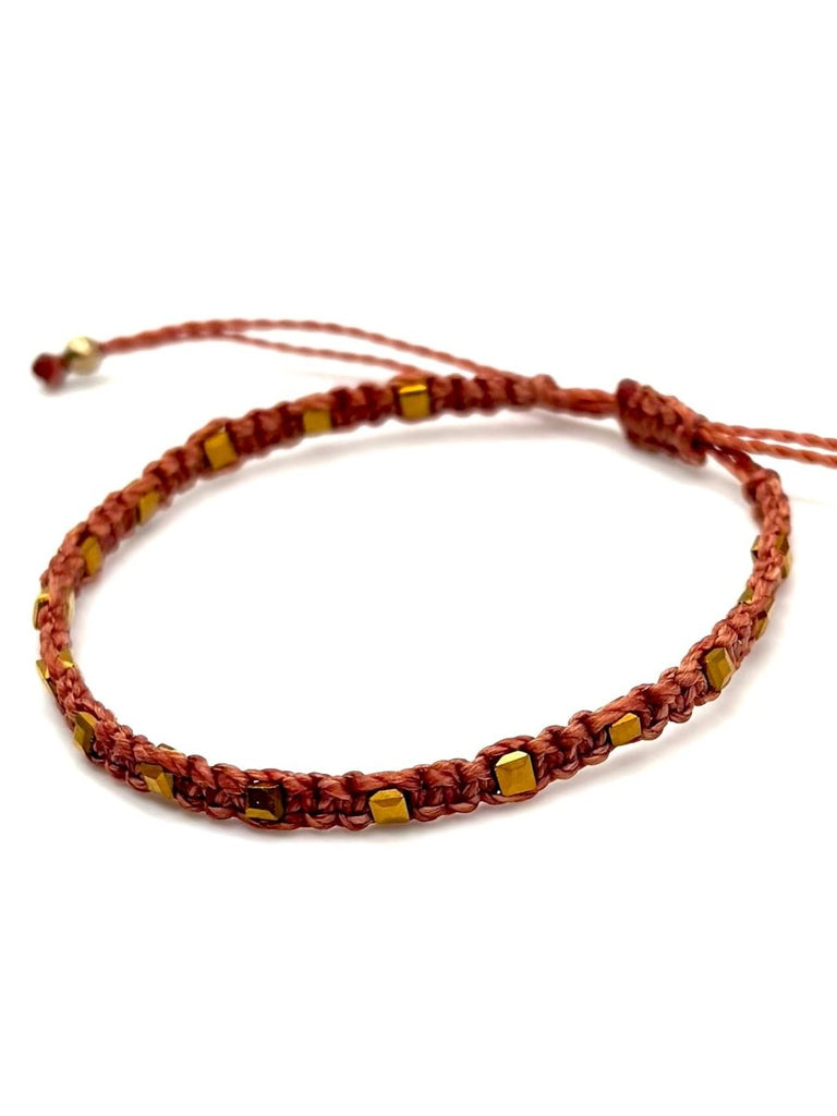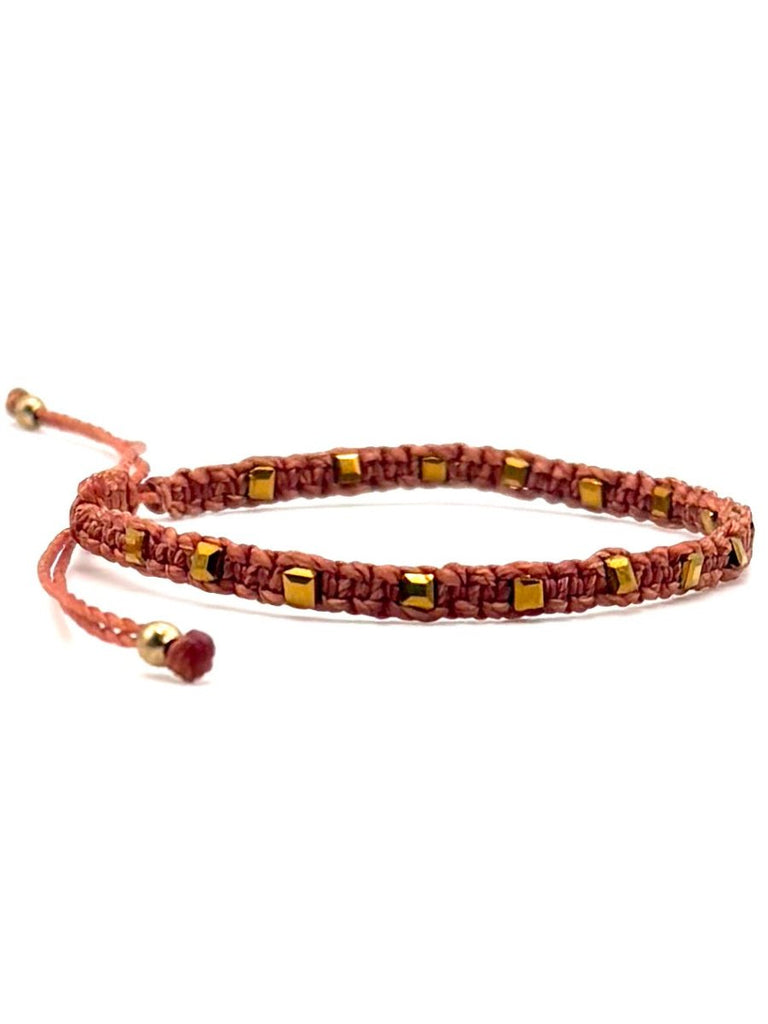 Pink & Gold Square Woven Bracelet is backordered and will ship as soon as it is back in stock.